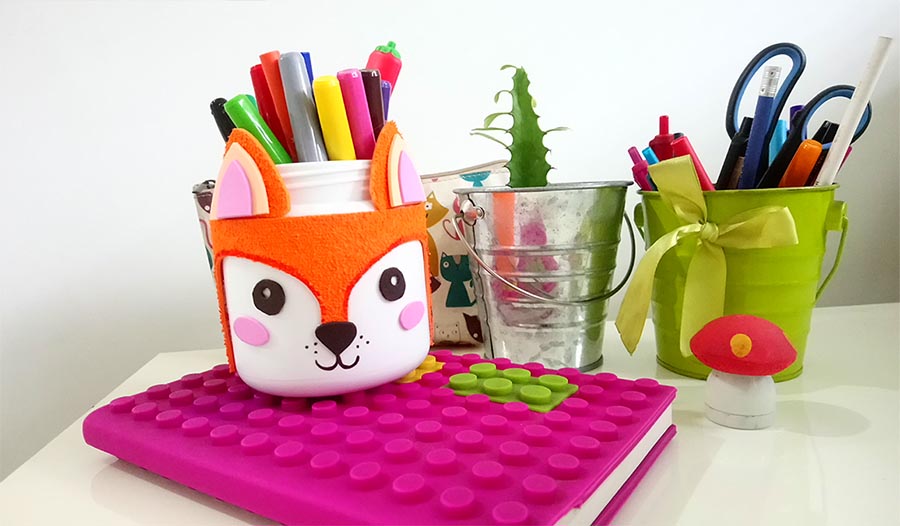 - Para finalizar pega la colita con silicona en la parte de atrás del tarro, deja secar y listo!!! Organiza tus lápices de colores.